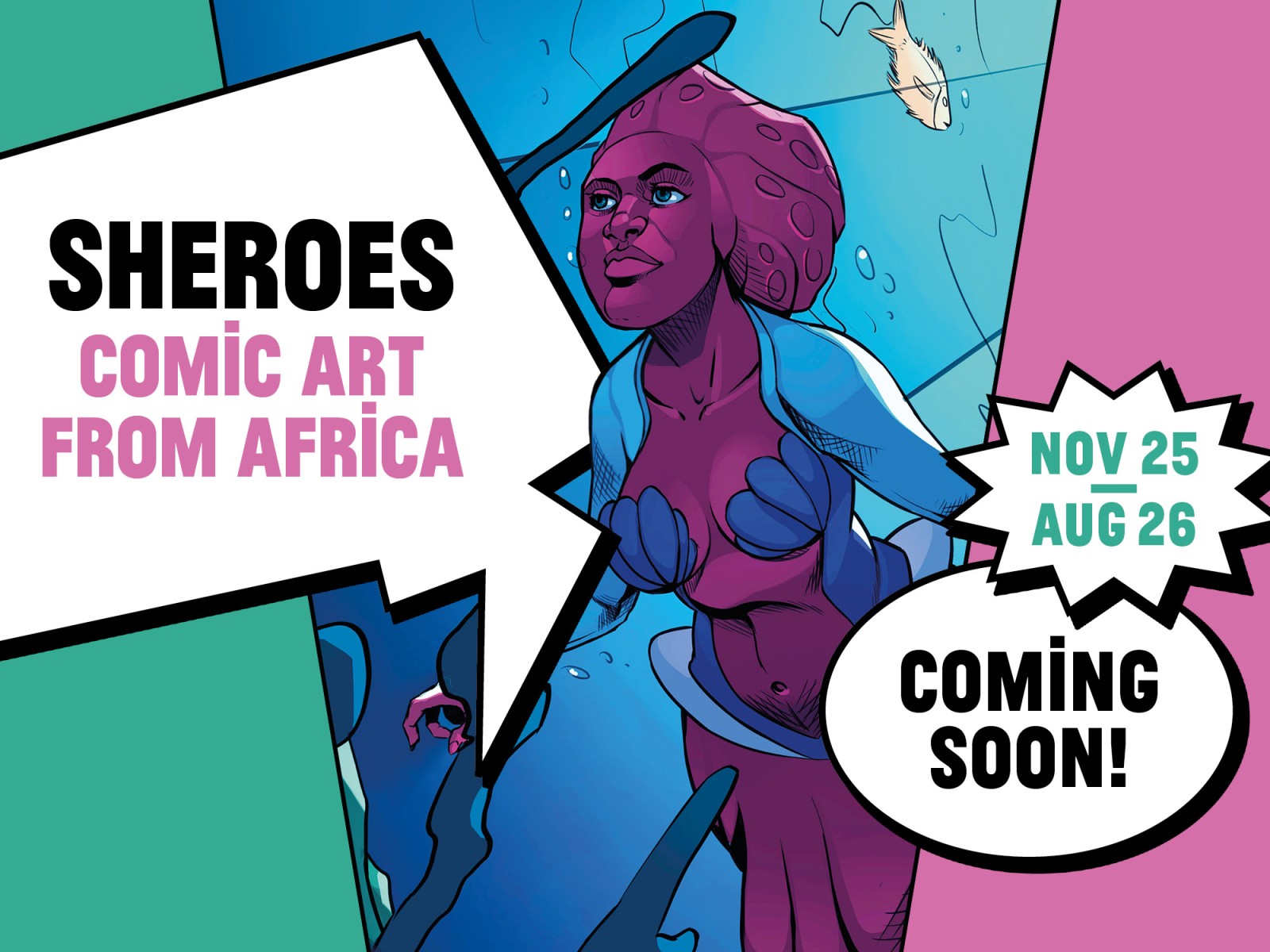 Die Ausstellung „SHEROES. Comic Art from Africa“ gibt einen Einblick in die vielfältige Comicszene Afrikas. Eine wachsende Gruppe junger Kreativer vom afrikanischen Kontinent erzählt in ihren Werken von (vorkolonialer) Geschichte, greift auf kulturelle Mythen und Symbole zurück und spricht soziale und ökologische Herausforderungen an. Mit ihren Comics bringen sie ihre Stimmen, Erfahrungen und Forderungen in die globale Gesellschaft ein. Sie widmen sich den wichtigen Themen unserer Zeit und entwerfen neue Zukunftsbilder.