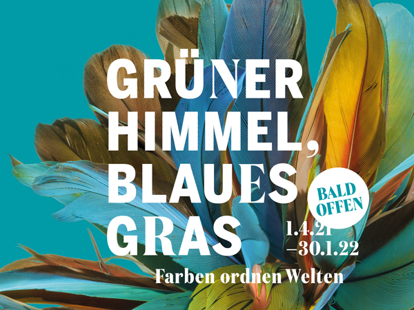Ausstellungsansicht „Grüner Himmel, Blaues Gras. Farben ordnen Welten", Weltkulturen Museum 2021, Foto: Wolfgang Günzel