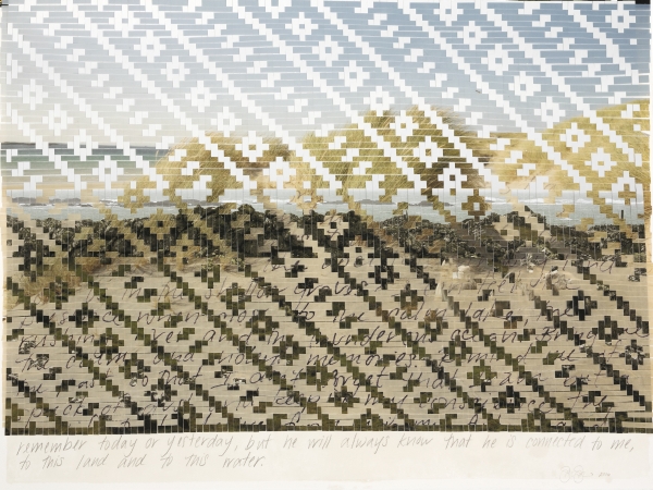 Die Künstlerin aus Sacramento, Kalifornien ist bekannt für ihre Fotoflechtarbeiten basierend auf Korbtechniken ihrer Chitimacha-Familie. Ihre Flechtbilder beruhen auf digitalen Fotoprozessen. Sie verknüpft die traditionelle Korbflechterei ihrer Vorfahren der Chitimacha und Choctaw mit persönlichen Aufzeichnungen, Familienarchiven, Landschaftsfotografien und gefundenen Bildern. Die Dimensionen Raum und Zeit sind für Sarah Sense eine treibende Kraft ihrer Gedanken über Familie und Heimat. Sie bezieht sich auf geographische und historische Verbindungen ihrer indigenen nordamerikanischen Familie mit Europa (dem Schwarzwald, Deutschland; Connemara, Irland). In Worten und Bildern bringt sie durch Flechtmuster persönliche Erfahrungen sowie die Abstammungslinie ihres neugeborenen Kindes zum Ausdruck. Die Muster entstammen der Kunst ihrer Vorfahren (Chitimacha und Choctaw). Der Betrachter wird zur Beschäftigung mit Migration und Zugehörigkeit aufgefordert.