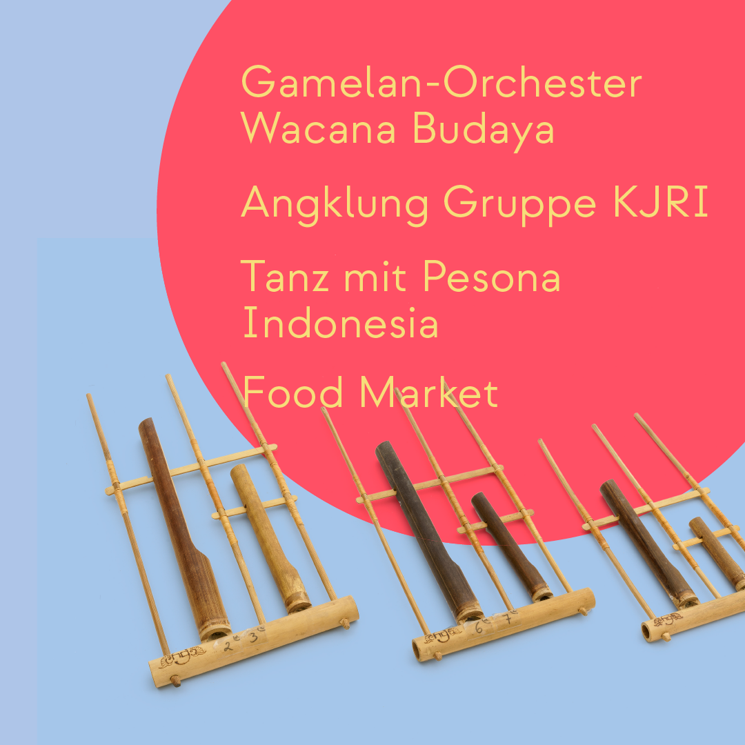 Gamelan und Angklung repräsentieren national und international die Klang- und Musikkulturen Indonesiens. In Frankfurt gibt es mit Wacana Budaya schon seit rund 40 Jahren ein Gamelan-Orchester. Das Generalkonsulat der Republik Indonesien in Frankfurt am Main hat zudem eine eigene Angklung-Gruppe. Bringen Sie Ihre Picknick-Decke mit und genießen Sie einen Nachmittag mit indonesischer Musik. Auf dem Foodmarket werden zudem indonesische Spezialitäten angeboten.