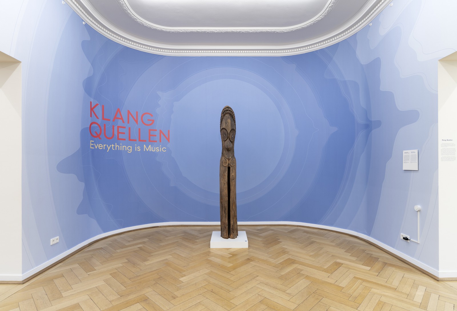 Ausstellungsansicht „Klangquellen. Everything is Music", Weltkulturen Museum. Foto: Wolfgang Günzel