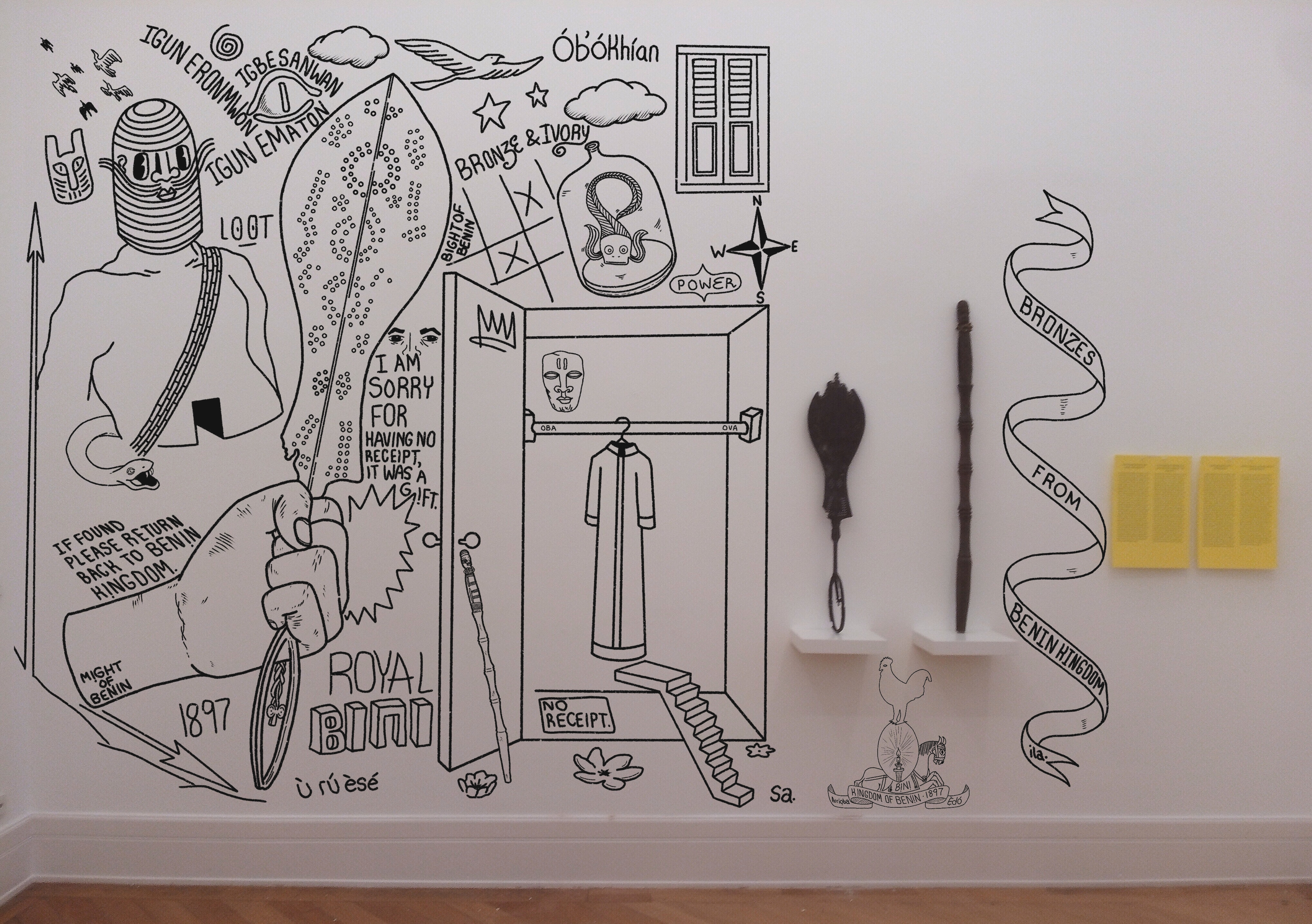 VERRLÄNGERT BIS 28. JANUARΔ Benin. Die Sammlung im Weltkulturen Museum. Perspektiven.In der Sammlung des Weltkulturen Museums befinden sich 57 Metall-, Holz- und Elfenbeinobjekte aus Benin. Wann und unter welchen Umständen sie in die Sammlung gelangten, wurde in der Ausstellung „Retrospektive“ thematisiert. In „Perspektiven“ richten wir den Blick nach vorne. Verschiedene kulturelle Akteur*innen aus Nigeria und der Diaspora kommen zu Wort. Der Illustrator und Designer Osaze Amadasun interpretiert in seiner Serie „Once Upon A Kingdom“ bedeutende Ereignisse im Benin des 16. Jahrhunderts neu. Mayowa Tomori setzt als Multimediakünstler 3D-Scans ein, um die Zugänglichkeit von Objekten in Museumssammlungen zu hinterfragen. Seun Adeyemi erschafft graphische Werke, die historischen Objekten aus dem Königreich Benin eine Stimme verleihen. In ihrem Roman „Butterfly Fish“ verbindet die Schriftstellerin Irenosen Okojie Elemente der Geschichte des Königreichs Benin mit dem Leben einer jungen Frau im heutigen London. Diese Arbeiten zeigen, wie wichtig es der jungen Generation ist, sich mit ihrem kulturellen Erbe auseinanderzusetzen und neue Ausdrucksformen dafür zu finden. Neben den künstlerischen Arbeiten werden auch Interviews mit Wissenschaftler*innen aus Nigeria gezeigt, die der Historiker Rasheed Hassan 2023 in Benin City durchführte.