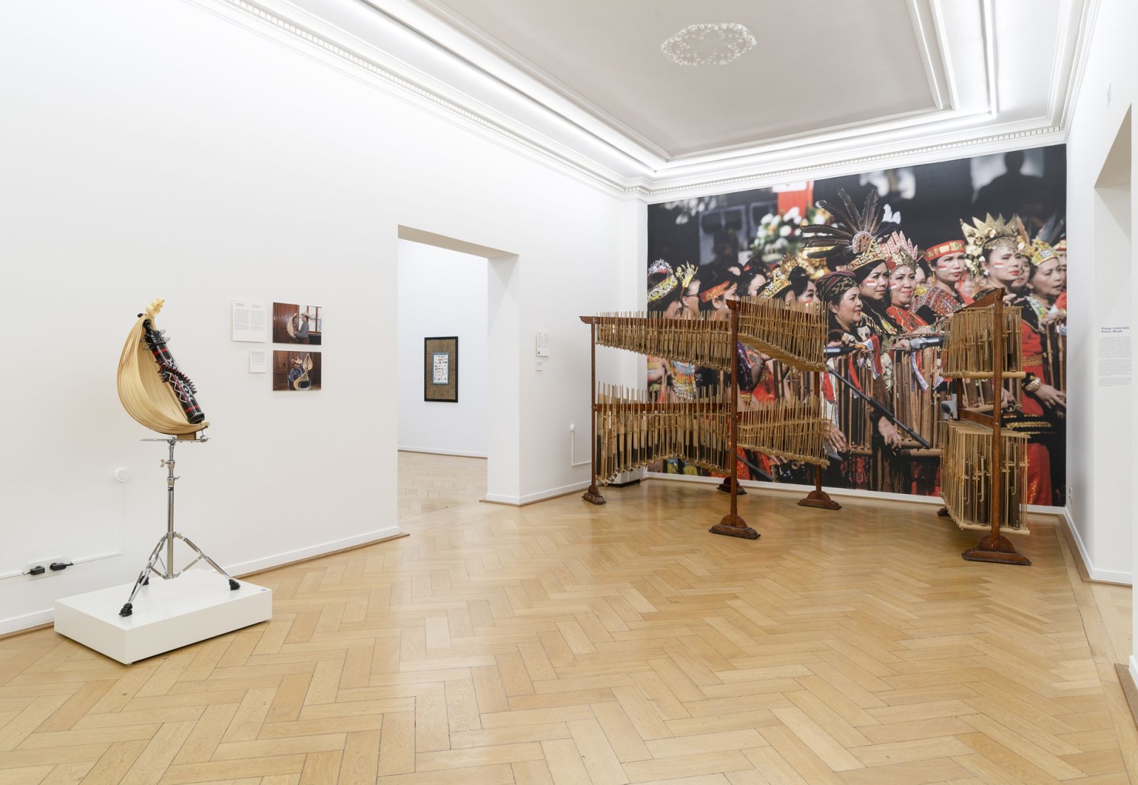Ausstellungsansicht „Klangquellen. Everything is Music", Weltkulturen Museum. Foto: Wolfgang Günzel
