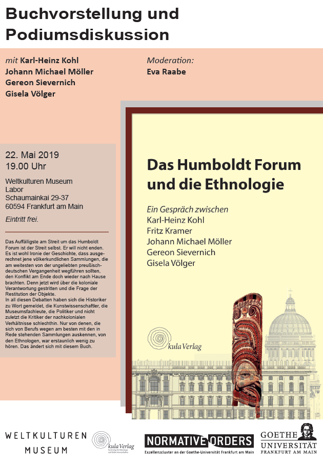 Moderation: Eva RaabeΔ BUCHVORSTELLUNG UND PODIUMSDISKUSSION„Das Humboldt Forum und die Ethnologie: Ein Gespräch zwischen Karl-Heinz Kohl, Johann Michael Möller, Gereon Sievernich, Gisela Völger“