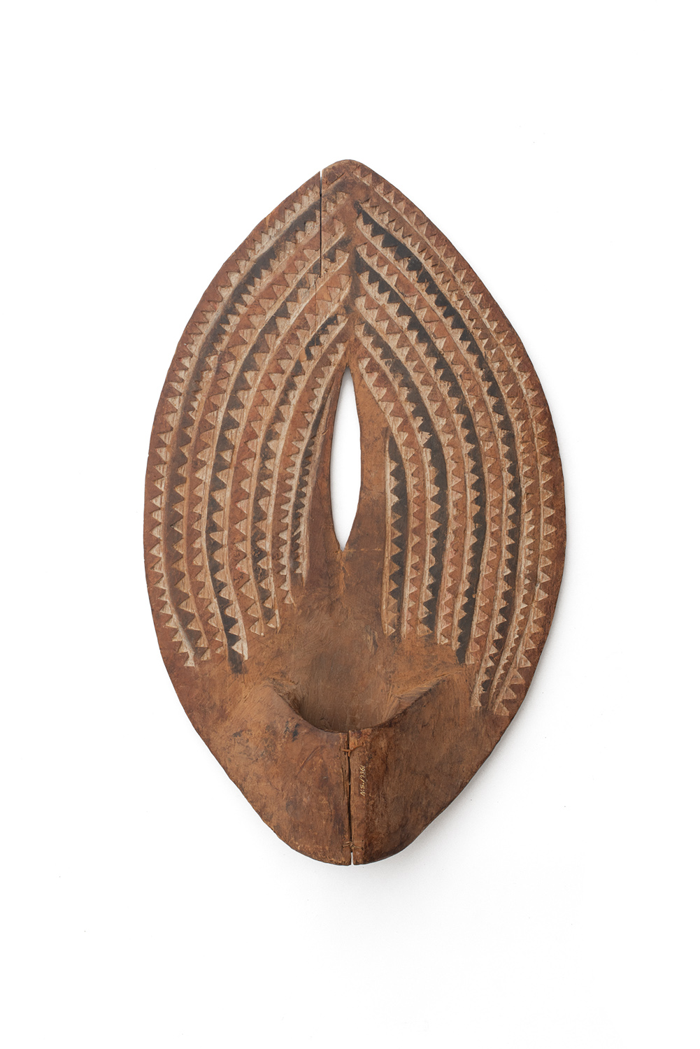Ndoome, 'Tanz-Schild'; Kikuyu, Kenia, 19./20. Jahrhundert; Holz, Farbpigmente; Künstler*in/Handwerker*in: nicht dokumentiert; Händler*in: William Ockleford Oldman; Im Weltkulturen Museum, Frankfurt am Main seit 1911; Foto: Peter Wolff