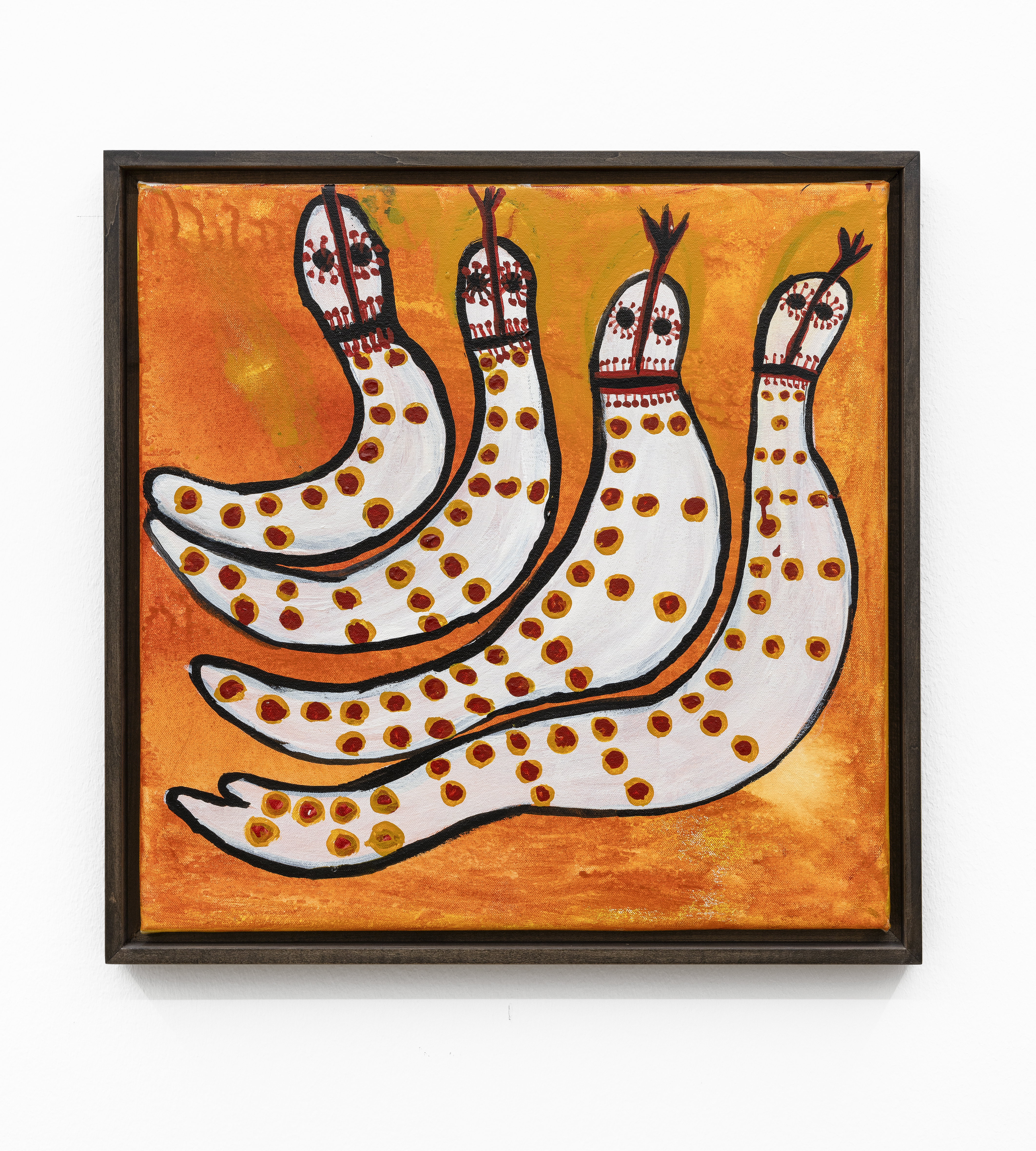 Yornadaiyn Woolagoodja, Ungud (snake), Acryl auf Leinwand, 45 x 45 cm, 2024.