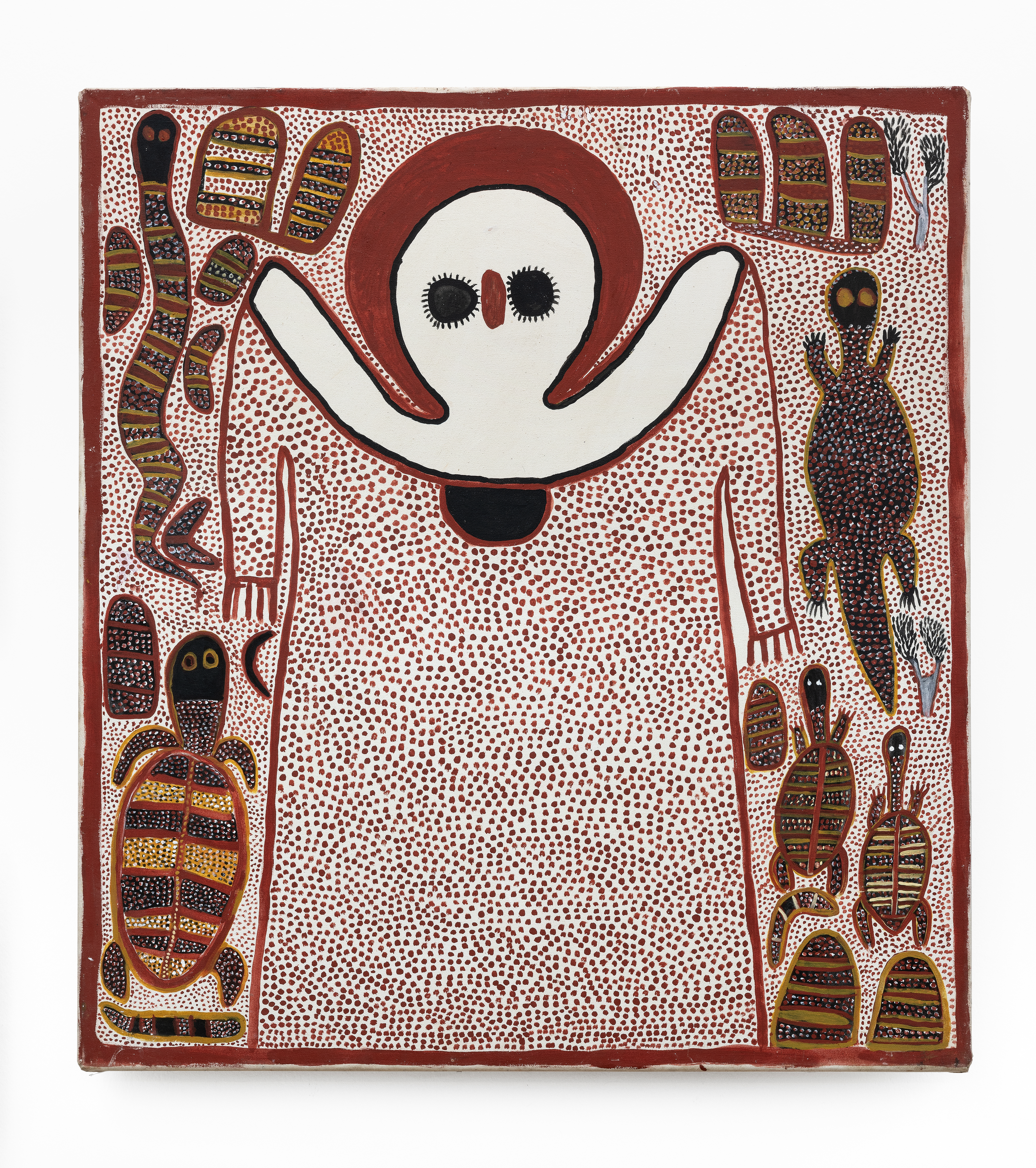 Lily Karadada, Wandjina Rain Spirit, Ockerfarben auf Leinwand , 98 x 88 cm, 1999. Foto: Wolfgang Günzel.