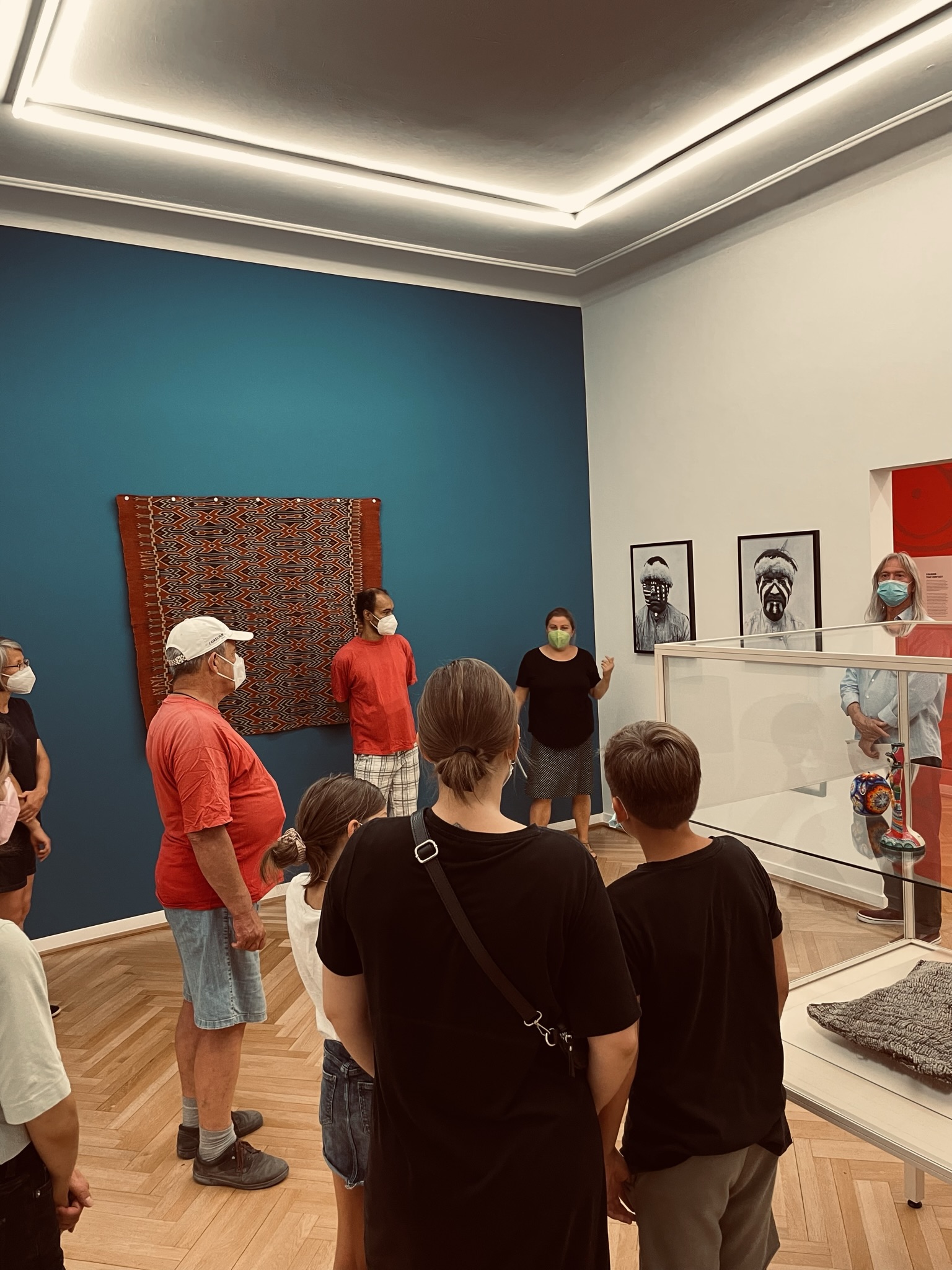 Marvin Brandmeier, Iris Loew und Michael Fann sprachen mit den Museumsbesucher*innen über ihre Lieblingsobjekte, die Bedeutung von Farben und Farb-Wahrnehmung. Teilgenommen hat ein inklusives Publikum, Groß und Klein, Menschen mit und ohne Behinderung. Für alle gab es neue Dinge zu entdecken, egal ob sie zum ersten oder zum wiederholten Mal im Weltkulturen Museum waren.