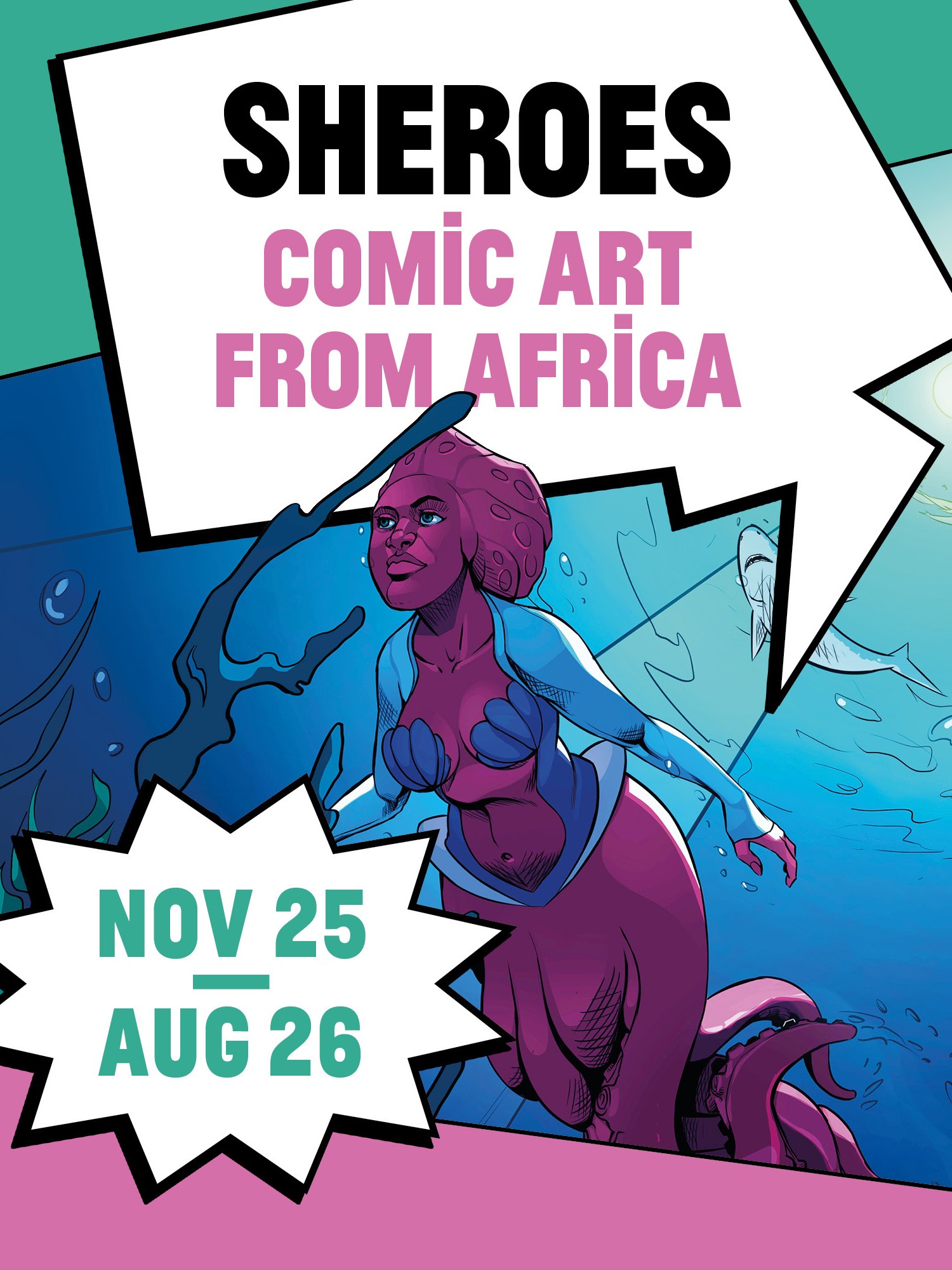 The exhibition “SHEROES. Comic Art from Africa” provides insights into Africa’s diverse comic scene. A growing group of young creatives from the African continent will be talking about (pre-colonial) history in their works, drawing on cultural myths and symbols and addressing social and ecological challenges. Their comics enable them to contribute their voices, experiences and demands to global society, addressing the key issues of our time and creating new visions of the future.