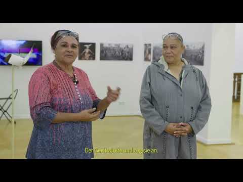In preparation for the exhibition, the Traditional Owners Leah Umbagai and Pete O'Connor from the Dambimangari Aboriginal Corporation and Rona Charles and Lloyd Nulgit from the Wilinggin Aboriginal Corporation, accompanied by the Australian anthropologist Kim Doohan, were guests at the Weltkulturen Museum in autumn 2023. More information about the residency.